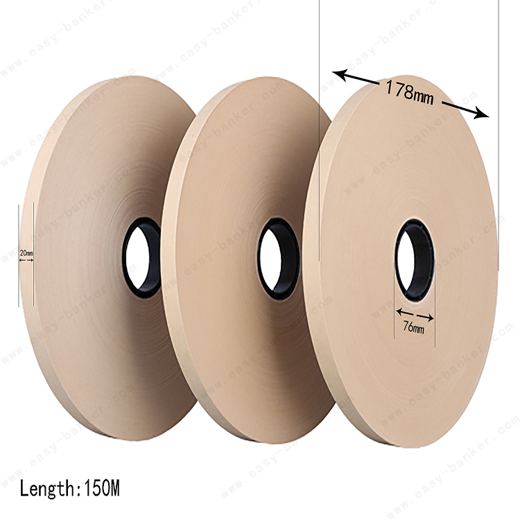 | Product Features 1. Our tapes are non-toxic and eco-friendly. 2. Clear and neat. No impurities, crack, dust or any holes. 3. Strong and durable. Harmless to your hands, and easy to bundle notes. 4. Applicable to semi-automatic and automatic packaging machine, working efficiently. 5. Suitable for Currency banders and Binding & Packaging Machine. 6. We can customize order at your request. 7. We have white, yellow and transparent tapes. 8. It is available to print logo & brand on the paper tape. 9. Solid packaging with inner boxes and outer carton. 10. OEM and ODM are available. |